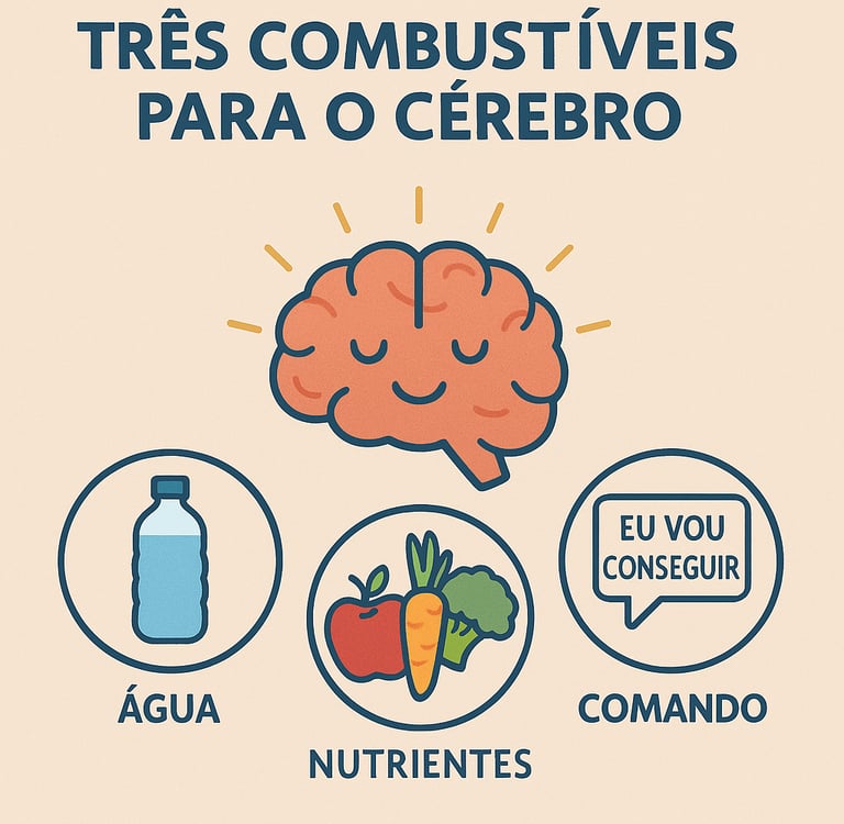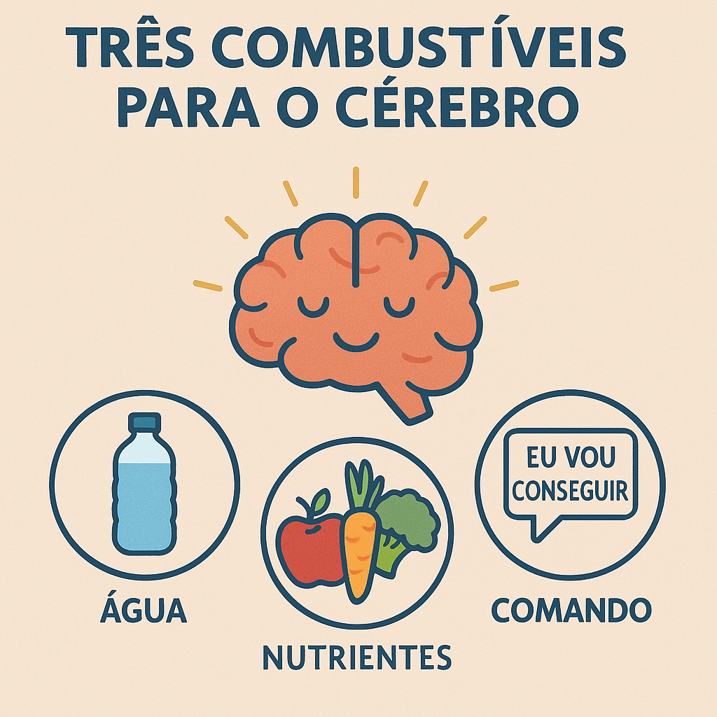 Água — porque sem hidratação, o funcionamento mental entra em colapso.