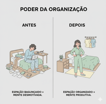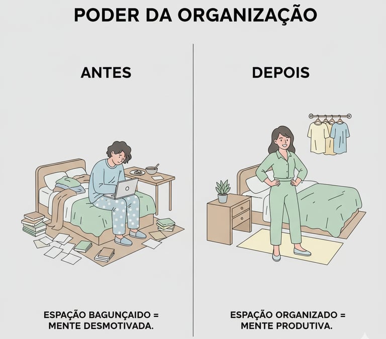 A desordem ao redor reflete a desordem da mente. Criar rituais diários — seja organizar o quarto, cuidar da aparência ou estruturar a manhã — fortalece a autodisciplina e prepara o corpo e a mente para a ação.